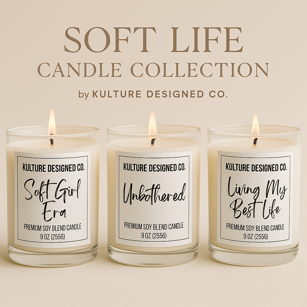 The Soft Life Candle Collection was created for women who are done operating in survival mode and ready to embrace calm, confidence, and emotional ease. Each candle in this collection is designed to shift your mood, soften your space, and help you slow down without guilt.